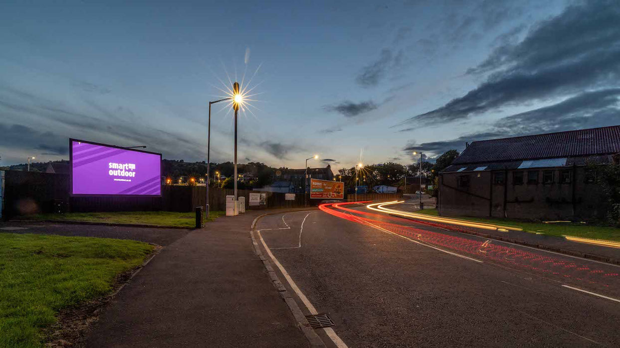 This large-format screen, showcasing static artwork, is strategically positioned along a busy main road, adjacent to Barrhead's well used train station. Experience the allure of advertising in Barrhead, where our screen on Carlibar Road offers unparalleled exposure to a captive audience, ensuring your message leaves a lasting impression in this thriving community.
